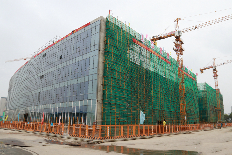 新大劇院緊鄰省運會主會場——揚州體育公園,是我市改革開放以來一次性投資最大的文化項目。在集團領導的精心指導和各專業公司支持配合下,自5月底開始澆筑地下室基礎以來,項目部克服夏季高溫、臺風和汛期等因素影響工期,結構層次復雜、技術難度高等困難,僅用4個月的時間就完成了建筑面積逾8萬平方米的劇院地下室及主體結構工程,同時基本完成了南、北立面的幕墻施工任務。