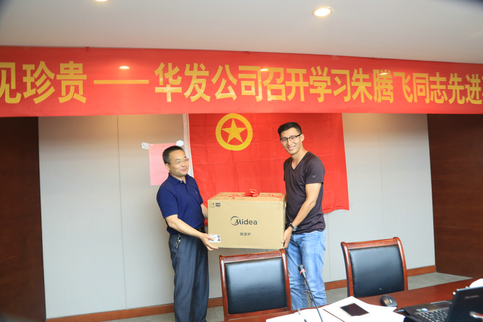 李浩煒副書記代表華發(fā)公司對朱騰飛進行了表彰獎勵,并號召所有青年員工:學習朱騰飛身上的擔當和奉獻精神,將飽滿高昂的激情投身于工作,為華發(fā)的事業(yè)盡責、盡心、盡力。