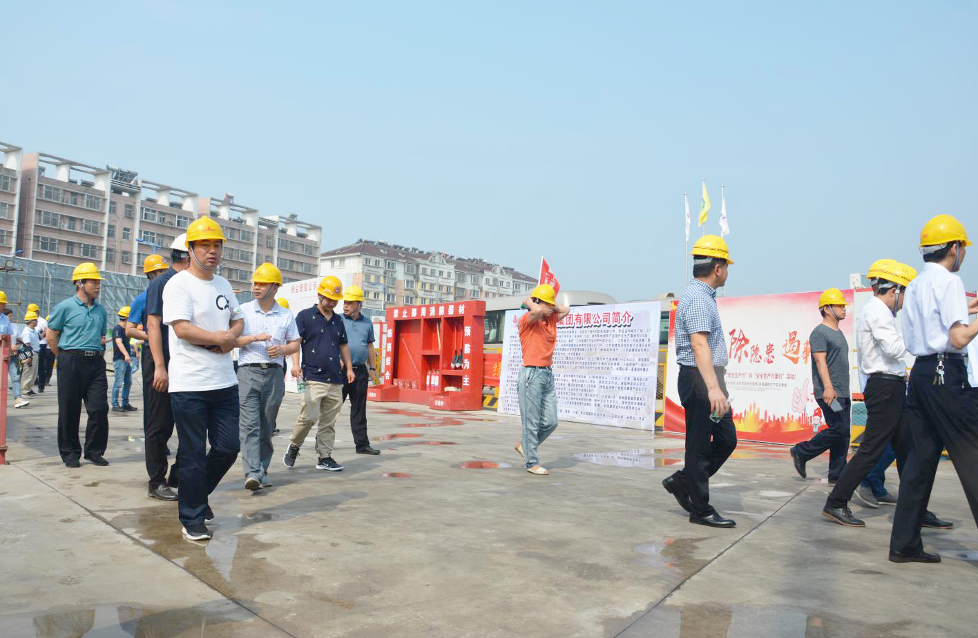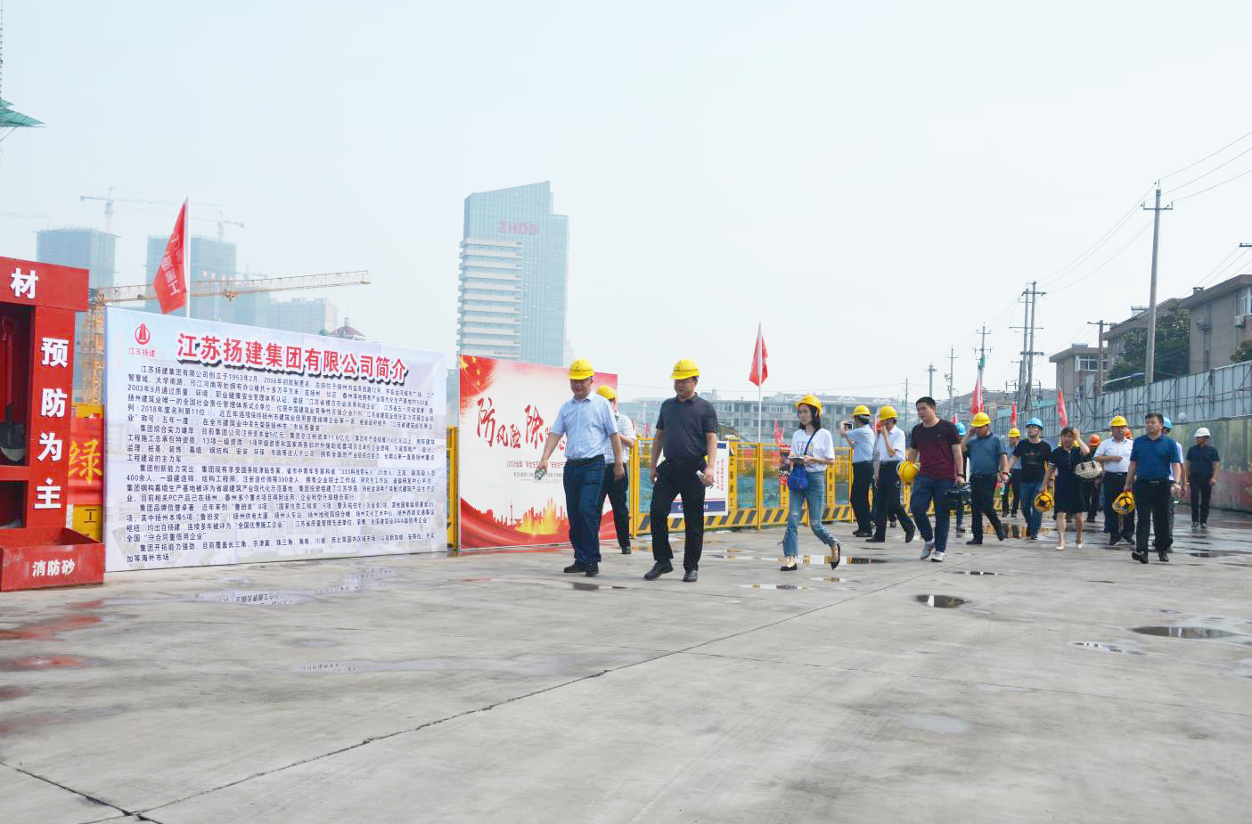 揚建網訊 6月28日上午,揚中市林成春副市長帶領市住建局局長、生態環境局局長等相關部門負責人以及揚中市所有在建項目負責人在我集團和上海七建共同承建的揚中老城區改造項目——新城九里香畔項目召開揚中市建設工程揚塵治理工作會。