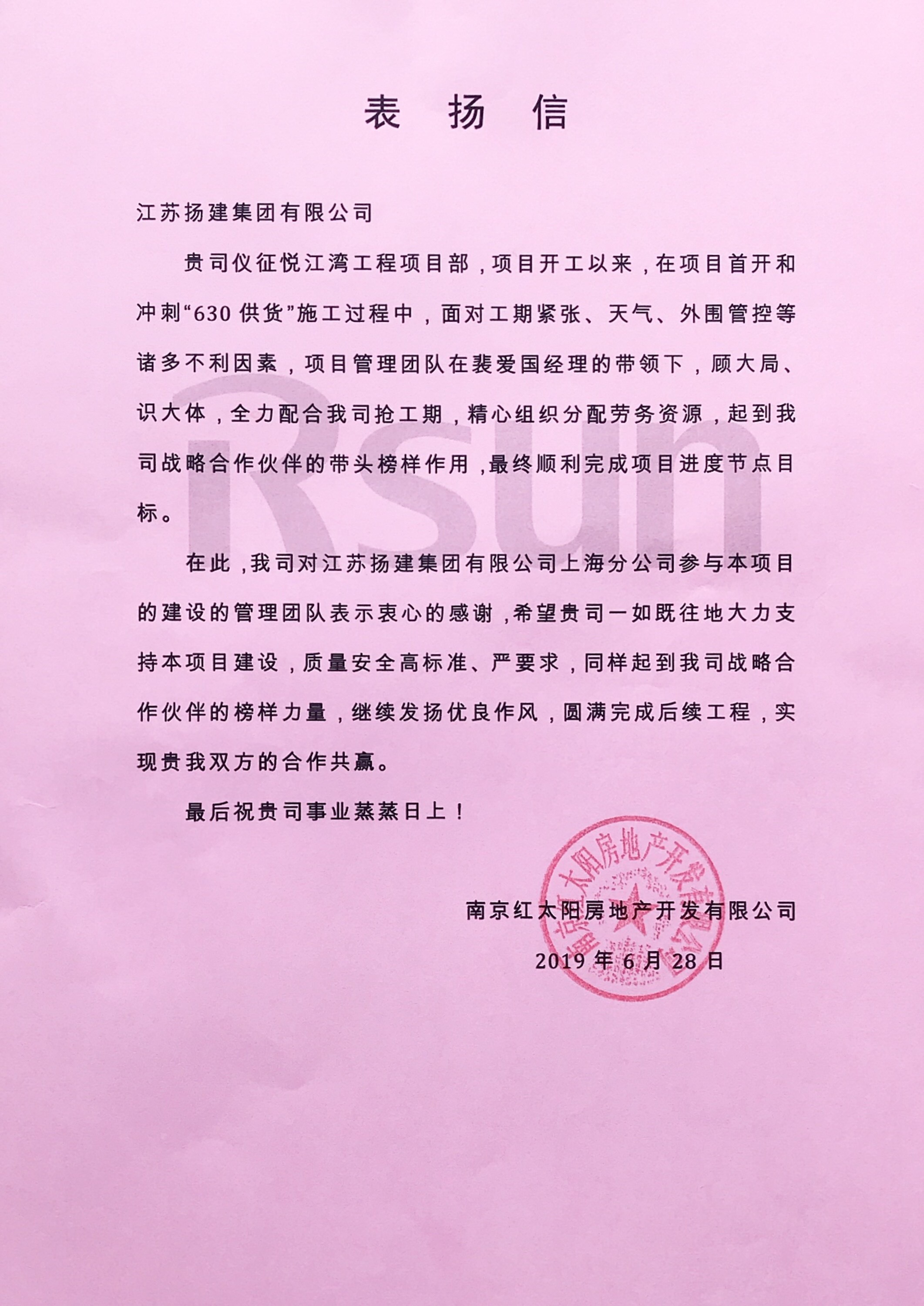 四公司儀征悅江灣項目部受到業主表揚