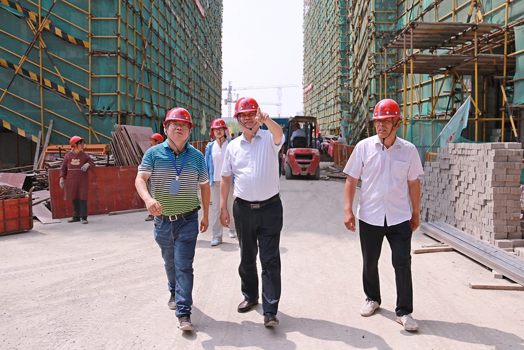 在高郵人民醫院東區醫院(二期)項目,曹德榮董事長與現場管理人員親切交談,詢問了項目建設情況,與項目管理人員進行了專業公司體制探討,以及安全管理一定要落實到實處,爭創全市一流企業。所到項目,董事長都要求項目負責人要嚴格按照集團夏季施工安全生產工作要求,認真落實防暑降溫措施。