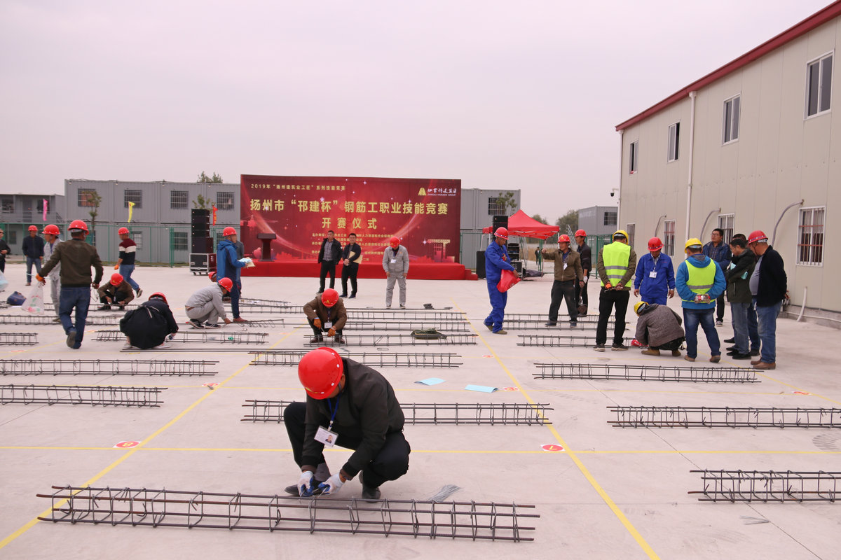 揚建網訊 11月12日,由揚州市總工會、市人力資源和社會保障局主辦,邗江區總工會、人社局、住建局承辦,邗建集團協的揚州市“邗建杯”鋼筋工職業技能競賽在邗建集團軟件產業園項目進行,我集團由華瑞勞務選派了3名選手參賽。