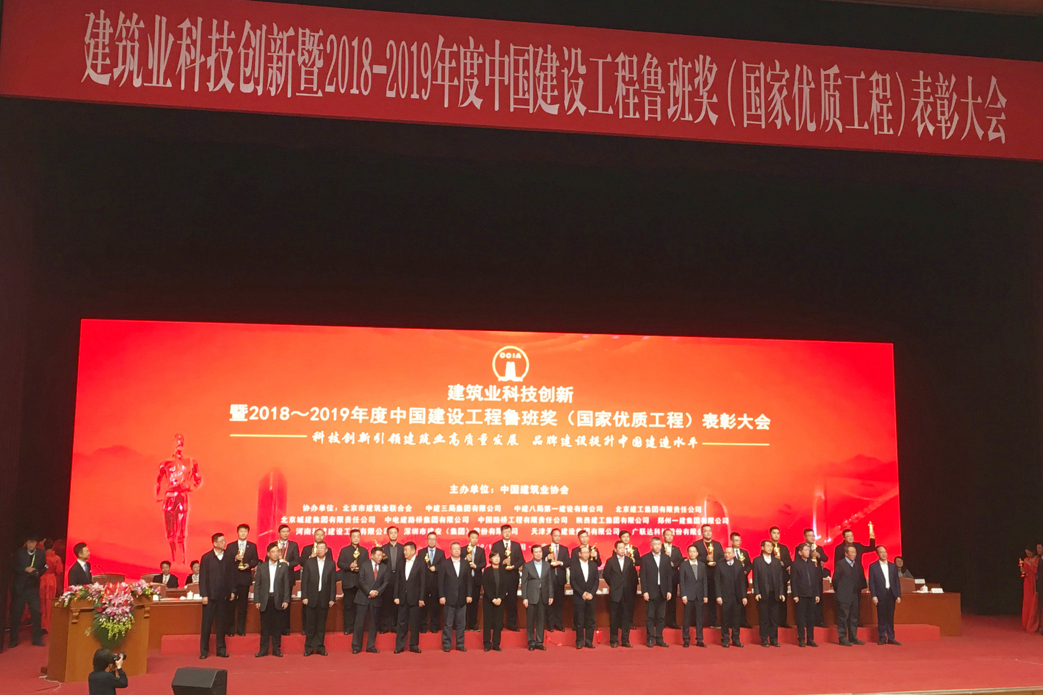 揚建網訊 12月10日下午,中國建筑業協會在北京市朝陽區來廣營西路88號北京會議中心組織召開了建筑業科技創新暨2018~2019年度中國建設工程魯班獎(國家優質工程)表彰大會。由我集團總包承建的揚州西部交通客運樞紐、揚州七二三所新區二期科研樓兩個項目分別獲得2018年度、2019年度中國建筑工程魯班獎。至此,我集團魯班獎獲獎總數已達9項,在揚州本埠所有的8項“魯班獎”工程中,我集團獨占6項。