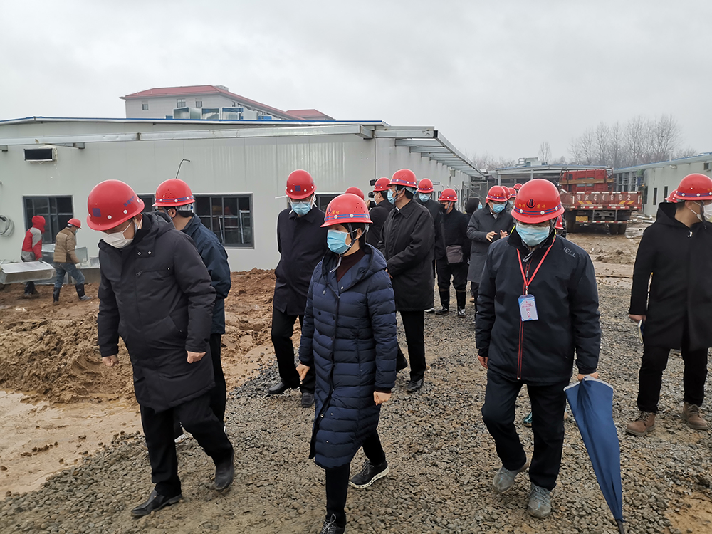 揚建微訊 2月15日下午2時許,揚州市政府市長張寶娟、副市長何金發、余珽一行蒞臨我集團蒼頡山病區工程視察指導。