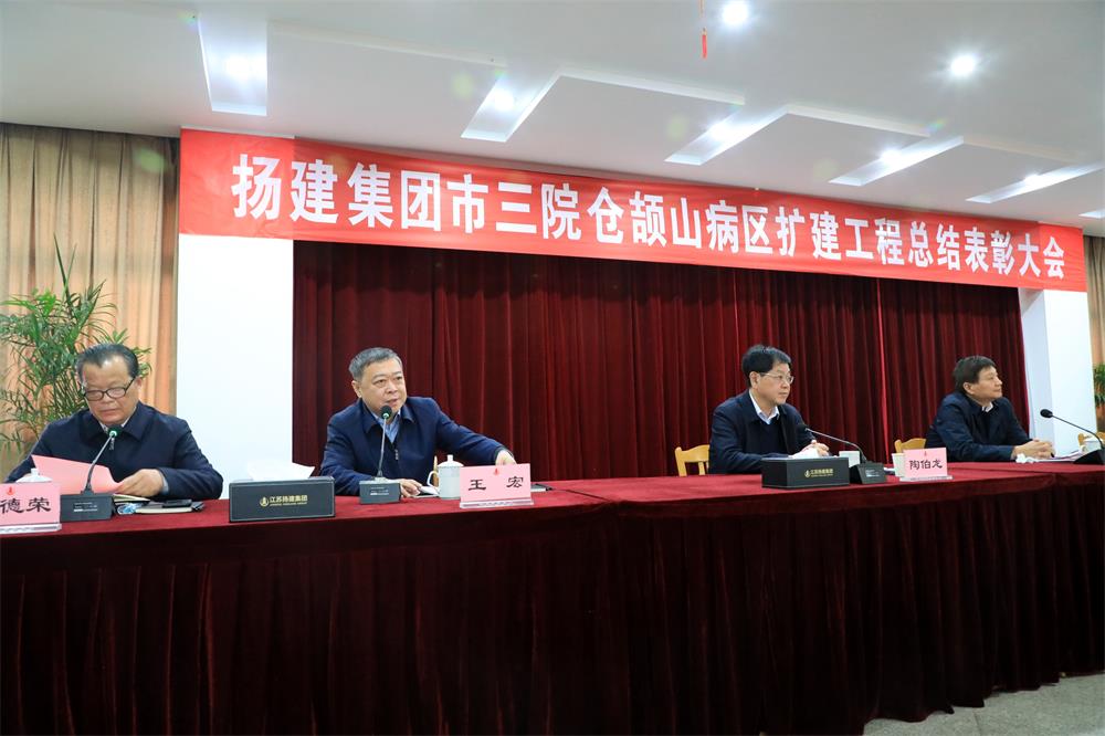 揚建網訊 3月29日下午,市三院倉頡山病區擴建項目表彰大會在集團鹽阜路辦公區七樓會議室召開。會議由集團董事長曹德榮主持,市人大常委會副主任楊正福出席表彰儀式,住建局、建工控股領導及集團主要領導參加了表彰儀式。