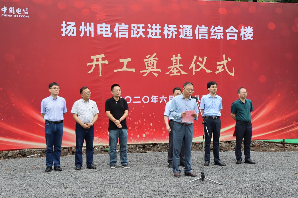 揚建網訊 6月28號下午,由集團總包承建的揚州電信躍進橋通信綜合樓開工奠基儀式在運河西路揚州躍進橋通信大院內順利舉行。揚州電信黨委書記兼總經理郭劍、我集團總經理鄒厚存、副總陳寶中及各參建方代表等出席活動。