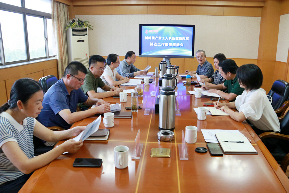 揚建網訊 9月1日下午,集團在鹽阜西路總部六樓會議室召開新時代產業工人隊伍建設改革試點工作部署推進會。揚州市總工會建設產業主任范華蒞臨指導,集團工會及總部相關部室負責人參加了本次會議。