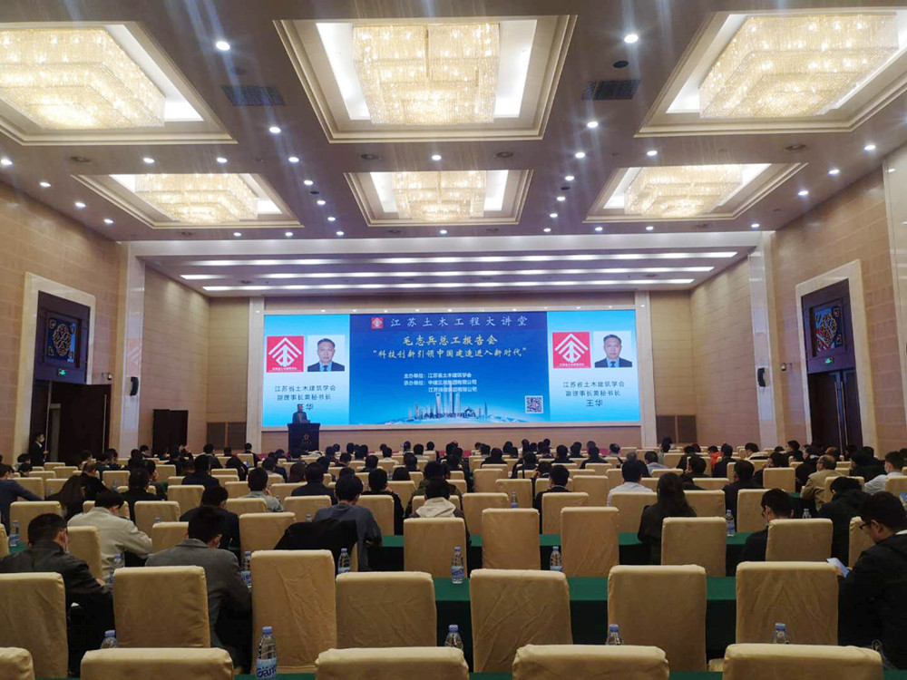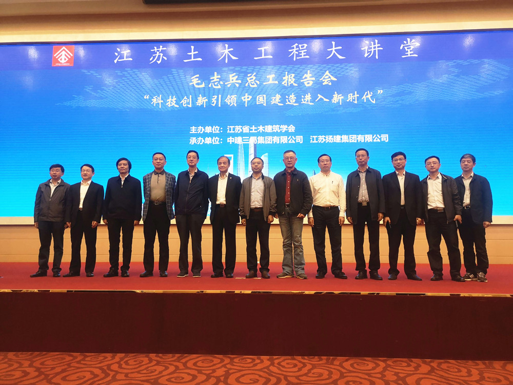 揚建網訊 10月16日下午,由江蘇省土木建筑學會主辦,中建三局和我集團共同承辦的2020年江蘇土木工程大講堂“科技創新引領中國建造進入新時代”學術報告會在南京舉行。會議由江蘇省土木建筑學會副理事長兼秘書長王華主持,中國建筑業協會專家委員會副主任、原南京市建設委員會副主任趙正嘉、我集團公司總經理鄒厚存、技術人員及南京分公司共計40余人參會,省內高校、科研院所、設計院、施工企業、監理單位等350多人聆聽了此次報告。