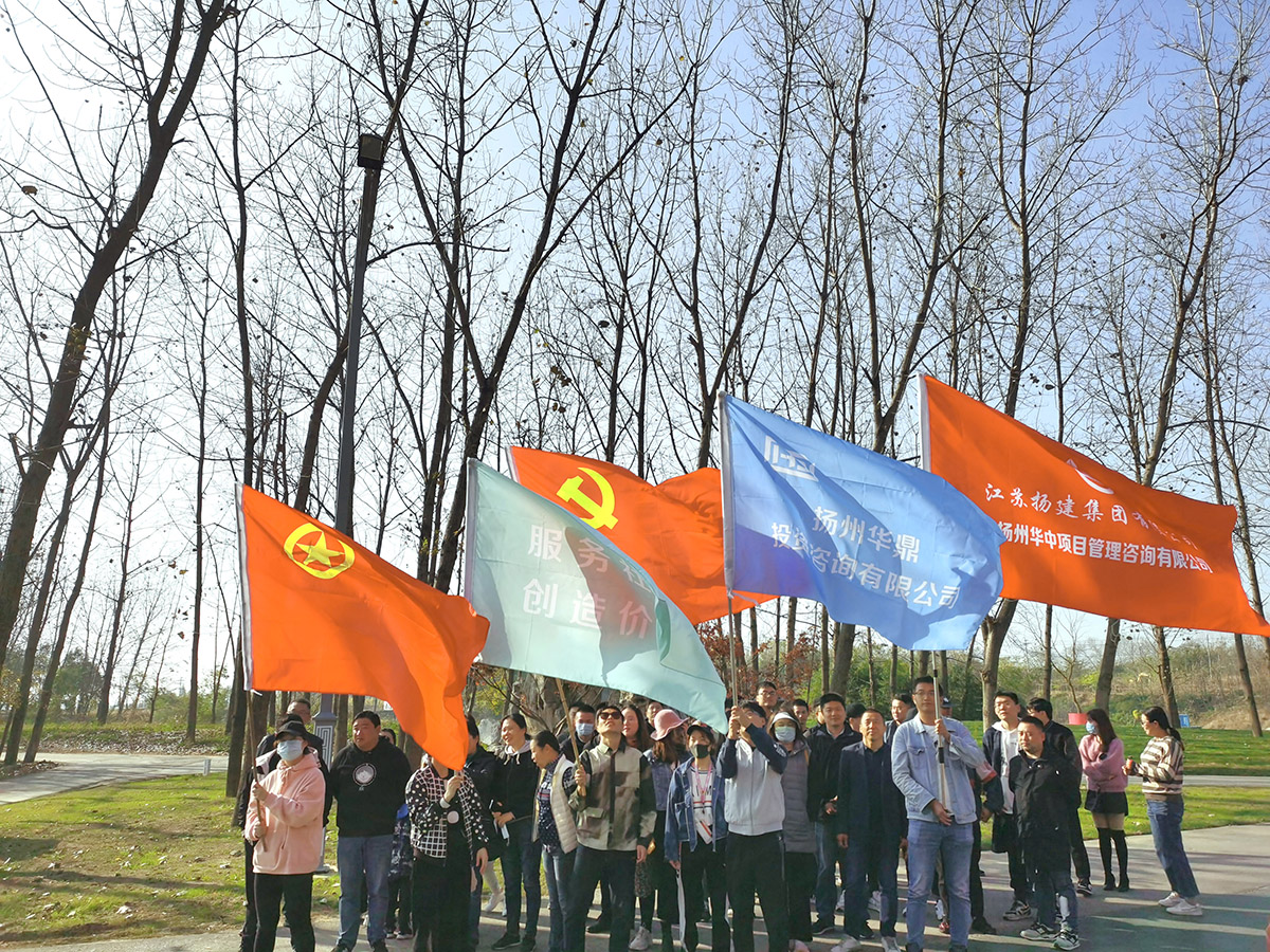 揚建網訊 11月14日,為增進員工間友誼,豐富員工業余生活,增進同行單位相互間交流。華中、華鼎公司及揚州造價管理站在揚州觀月湖生態農業科技園共同開展了戶外團建并進行了主題黨課日活動。