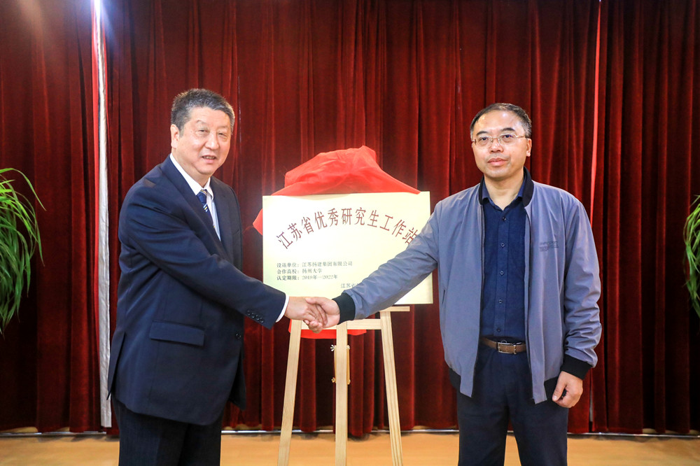 首先,研究生院王莉副院長主持了授牌揭牌儀式,揚州大學黨委常委、副校長陳國宏與集團總經理鄒厚存共同為“江蘇省優秀研究生工作站”揭牌并合影留念。