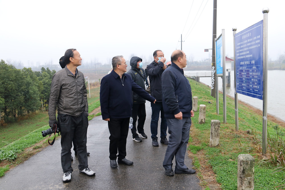 會前,與會人員冒著濛濛細雨,漫步湖畔,參觀了我集團落實省總“三交三聯”成果——觀月湖生態農業科技園。