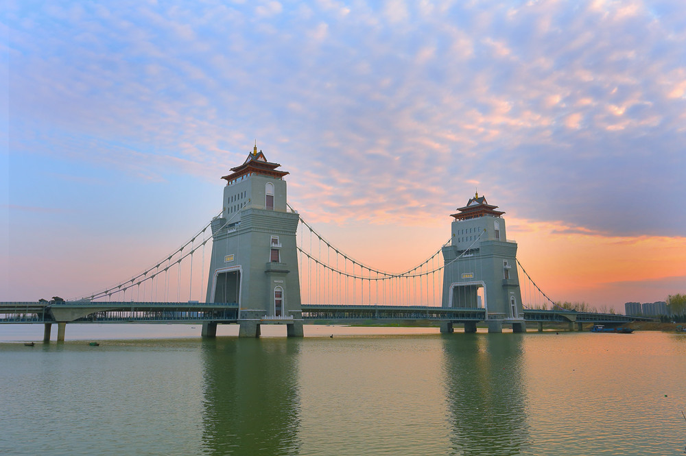 新建萬福大橋工程由我集團和中鐵大橋局集團有限公司聯合承建,江蘇華發裝飾有限公司和揚州市環境保護有限公司參建。新建萬福大橋工程是國內首座雙層主梁的混凝土主梁自錨式懸索橋,國內主纜垂跨比最大的混凝土主梁自錨式懸索橋,也是首座將古典建筑與現代懸索橋有機結合融為一體的自錨式懸索橋。橋梁全長 664m,由主橋、兩岸引橋及橋頭堡組成,主橋長 376m,為混凝土主梁雙塔自錨式懸索橋,跨徑組成為(94+188+94)m,東引橋采用一聯(2×50+44)m 連續箱梁,西引橋采用一聯 4×11m 連續空心板梁和一聯 2×50m 連續箱梁。大橋為雙層橋梁,上層為車行道,下層為人行橋及非機動車道橋。工程獲得質量、安全類獎項 19 項,國家級獎項 5 項,省部級獎項 8 項,地市級獎項 6 項。科技創新獲得 2 項國家發明專利,4 項實用新型專利,1 項外觀設計專利,4 項科技進步獎,7 項省級工法,1 項建筑業新技術應用示范工程,3 項省部級工程建設優秀 QC 成果。