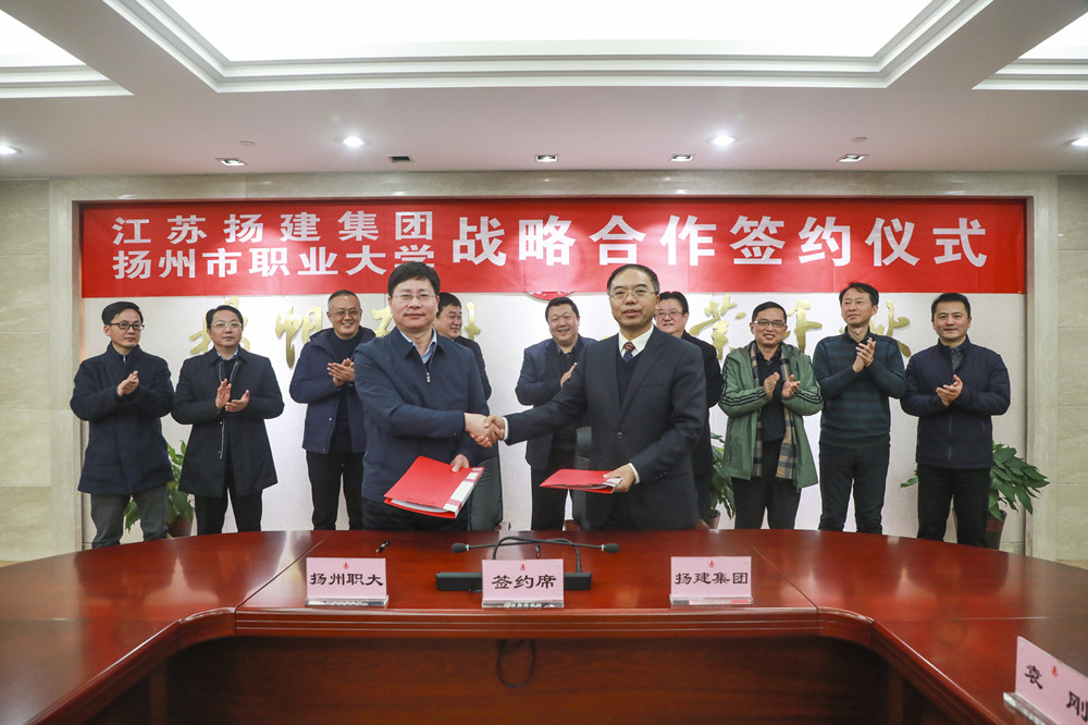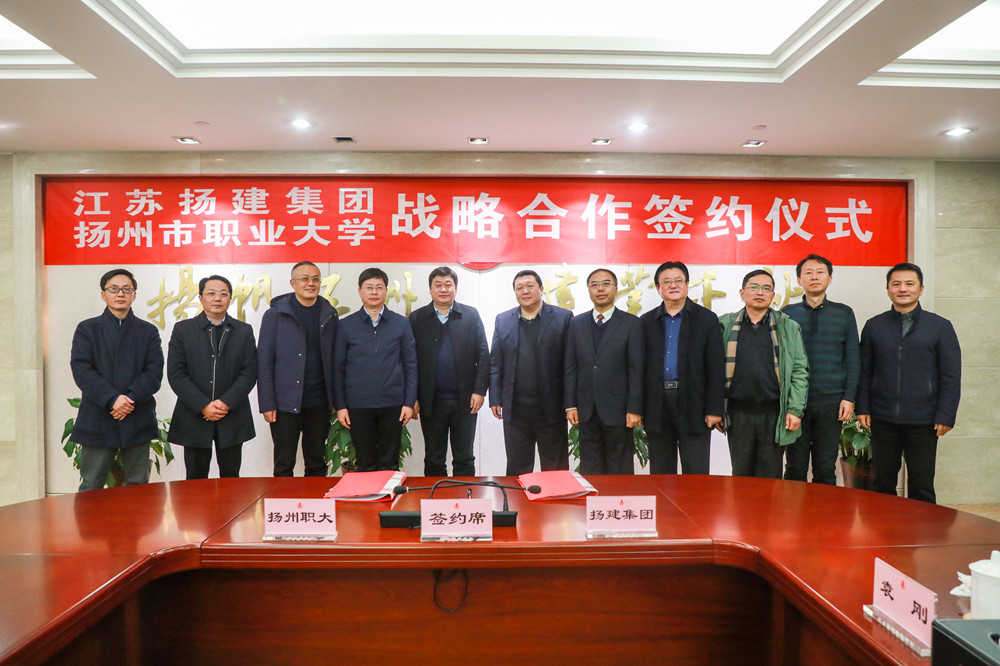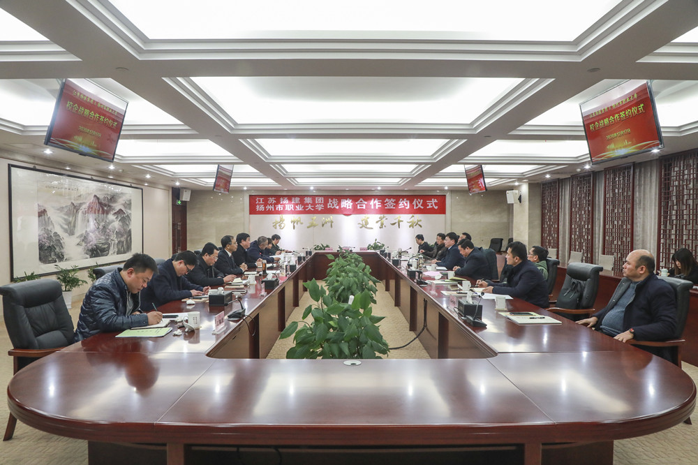 揚建網訊 12月17日下午,揚州市職業大學與我集團戰略合作簽約儀式在文昌辦公區11樓會議室舉行。簽約活動由揚州職大黨委副書記許金如主持;職大黨委副書記、校長潘錦全等領導及集團黨委書記、集團公司董事長康往東等領導一同參加。