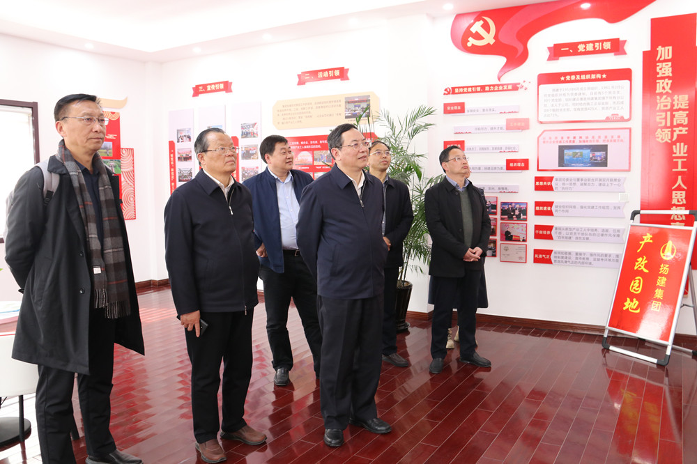 會議開始前,雙方黨員干部共同參觀了我集團“產改園地”展廳,該展廳共有“政治引領”“工匠培育”“機制創(chuàng)新”“和諧共創(chuàng)”四個篇章,通過參觀,省土木建筑學會一行領導對揚建集團產業(yè)工人隊伍改革建設情況有了更加詳實的了解。