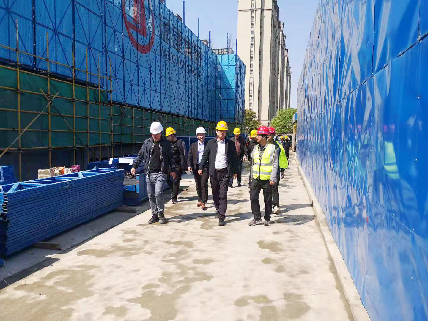 4月9日,由安監站、環保局、城管大隊組成的“差別化”驗收小組,在南京市經濟開發區質安站工作人員帶領下對項目現場進行聯合驗收。在驗收會議中,驗收小組肯定了項目部進場以來作出的努力,同時強調獲得“差別化管理工地”并不等于放松管理,項目部仍需對現場的安全文明施工高標準高要求,進行常態化管理。