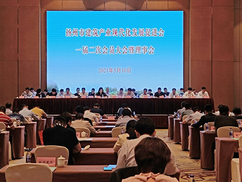 揚建網訊 5月10日,揚州市建筑產業現代化發展促進會一屆二次會員大會在揚州市皇冠假日酒店召開,我集團梁云彪、鄒厚存、耿杰等領導出席了會議。