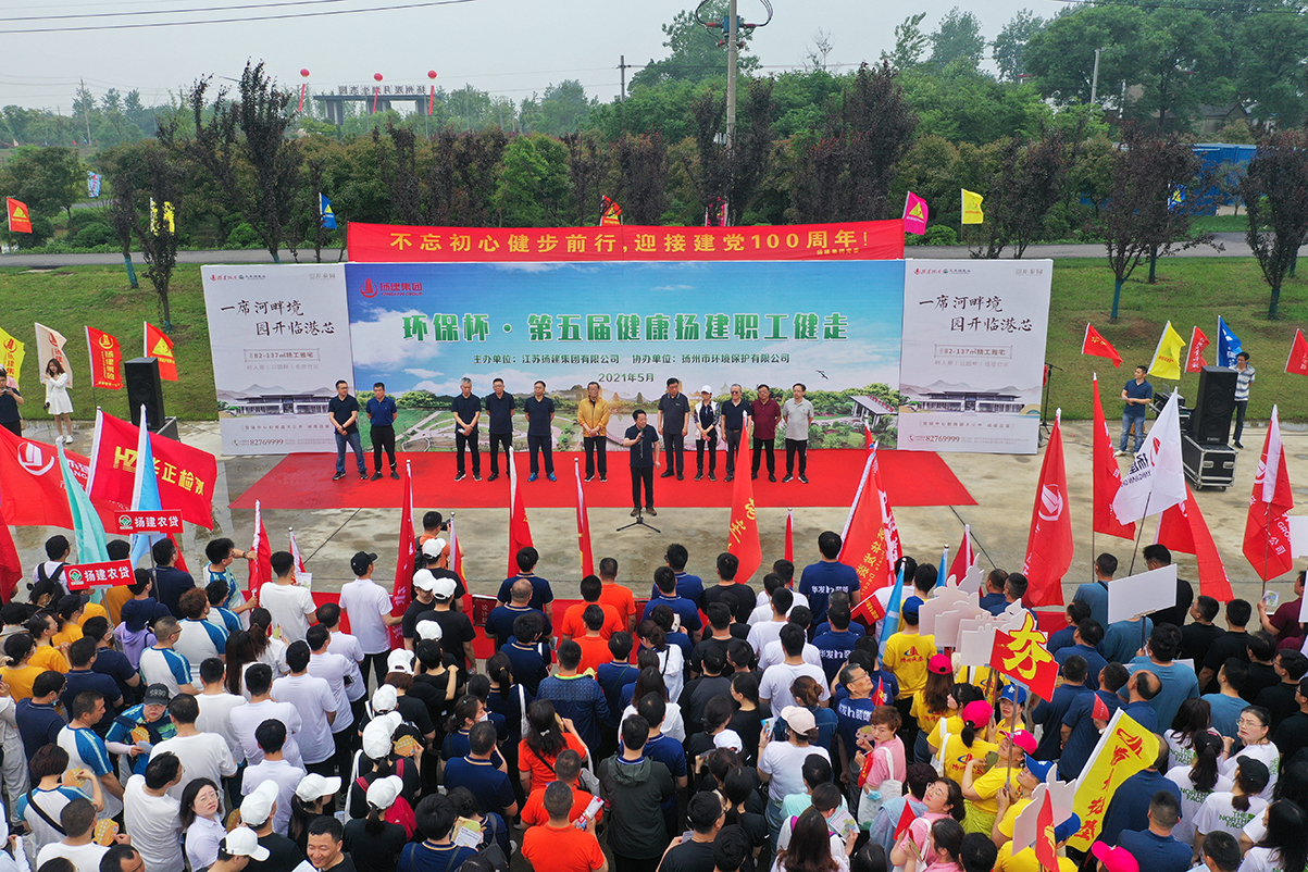 揚建網訊 5月15日上午,集團黨委組織組織開展了以“不忘初心,健步前行”為主題的“環保杯”職工健走活動,喜迎建黨100周年。本次活動在揚州觀月湖揚建現代農業園隆重舉行,集團工會、團委協辦,來自總部和基層單位的1223名員工參加;其中,泰州、無錫、上海、海南、深圳、珠海、北方公司分別在當地組織員工同步開展了健走活動。集團理事會主席曹德榮等在揚領導參加了開幕式及健走活動。