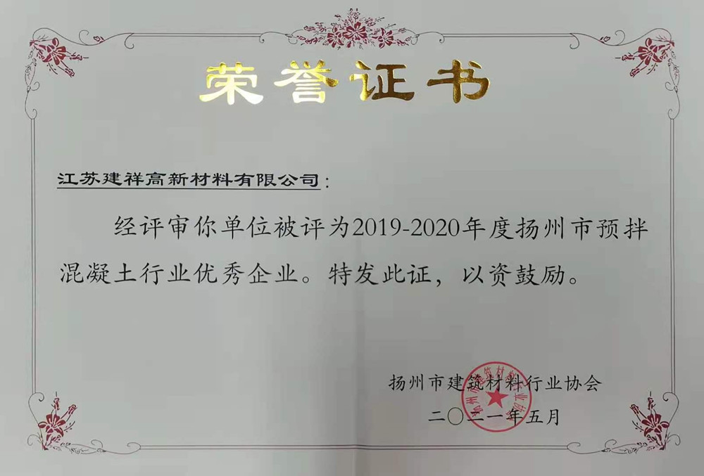 建祥華誠蟬聯揚州市建材行業優秀企業