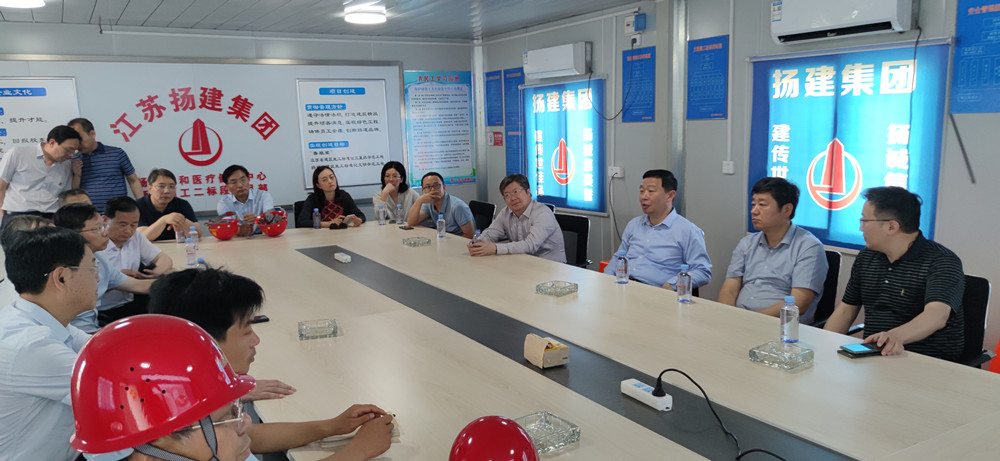 揚建網訊 6月10日,省住建廳顧小平書記一行,先后視察了集團頤和醫療健康中心二標段、GZ137建工科技園項目。揚州市副市長趙慶紅、市政府副秘書長林寶榮、市住建局局長陶伯龍、副局長薛炳寬、城建置業董事長葛仁凱、我集團公司總經理鄒厚存陪同視察。