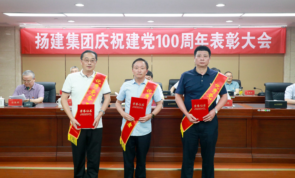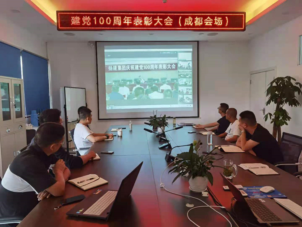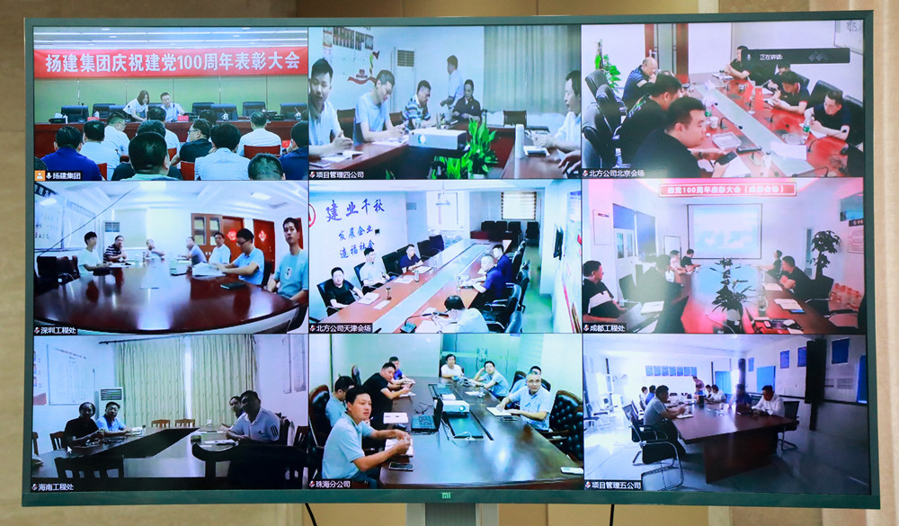 揚建網訊 6月26日下午三點,集團黨委在文昌辦公區14樓會議室召開了慶祝建黨100周年表彰大會。會議由集團黨委副書記張振新同志主持,集團在揚領導、總部中層管理人員、在揚基層單位黨政負責人、黨員代表參加。上海、新疆、北方、深圳、珠海、海南等外埠單位同步參加了視頻會議。