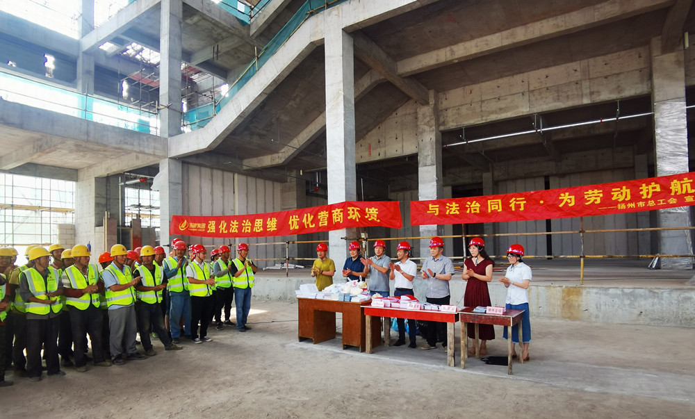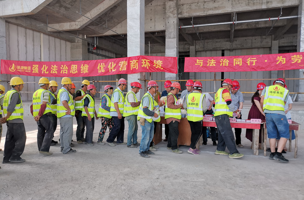 活動開始,市司法局領(lǐng)導(dǎo)詢問工人是否有法律方面的問題需要咨詢;并介紹了農(nóng)民工兄弟維權(quán)合法渠道。接著,何平部長代表我集團(tuán)對政府相關(guān)部門給予集團(tuán)和農(nóng)民工的關(guān)心關(guān)愛表示感謝,對辛勤奮斗在施工一線的工人兄弟表達(dá)了慰問。活動中,市相關(guān)部門領(lǐng)導(dǎo)給現(xiàn)場工人發(fā)放了《勞動法》《保障農(nóng)民工工資支付條例》《工傷保險(xiǎn)條例》《中國人民共和國民法典》等法律法規(guī)宣傳冊,并送去夏季防護(hù)用品,切實(shí)為工人謀實(shí)惠、辦實(shí)事,受到現(xiàn)場工人一致好評。