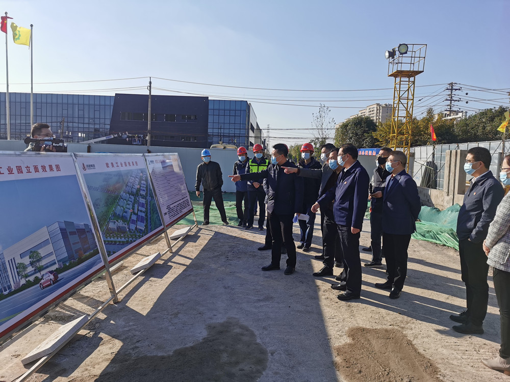 揚建網訊 11月8日下午,市委常委、開發區黨工委書記潘學元率領區黨工委、財政局、開發集團、綠投集團、文旅集團等主要負責人一行來到我集團總包承建的開發區歐美工業園C地塊EPC工程總承包項目視察,集團公司總經理鄒厚存等陪同。