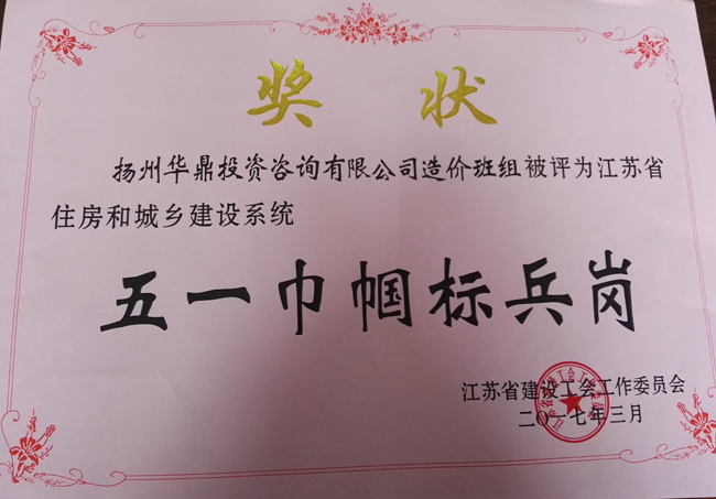 揚建網(wǎng)訊(工會 郭太琮)在省城鄉(xiāng)建設(shè)系統(tǒng)職工勞動競賽和建設(shè)工會工作評比中,我集團榮獲2016年度江蘇省住房和城鄉(xiāng)建設(shè)系統(tǒng)勞動競賽“有功單位”、“和諧勞動關(guān)系模范企業(yè)”、“安康杯”競賽優(yōu)勝單位;揚州市樁基有限公司被評為2016年度江蘇省住房和城鄉(xiāng)建設(shè)系統(tǒng)“模范職工小家”榮譽稱號;揚州華鼎投資咨詢有限公司被評為2016年度江蘇省住房和城鄉(xiāng)建設(shè)系統(tǒng)“五一巾幗標兵崗”榮譽稱號。