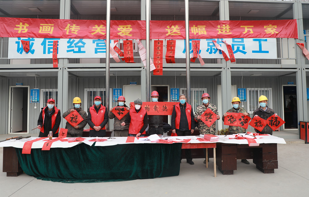揚建網訊 2022年1月20日上午,市人大機關老干部黨支部聯合揚州市老干部書畫研究會,來到我集團項目管理三公司承建的揚州大學生命科學大樓項目建設工地,為駐守工地的農民工兄弟們寫春聯、送福字。在新年來臨之際,提前向他們送上新春祝福,為他們送吉祥,鼓干勁,感謝他們為“好地方”揚州的城市建設和發展默默奉獻智慧與汗水。