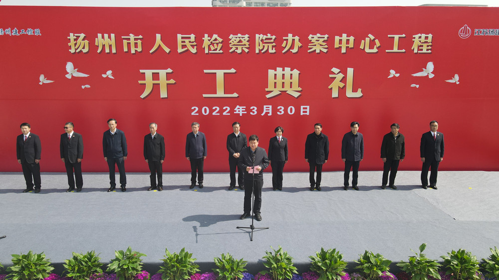 康往東董事長在開工致辭中表示,為確保本工程順利實施,我集團精心選擇了業績出色的項目管理團隊和優秀的施工隊伍,并將在項目實施過程中精心策劃、科學組織、嚴密管理、全面履約,以創精品工程、揚州市標準化文明工地為目標,確保質量、安全和工期,充分展現揚建產業鏈最全的專業能力和全市一流的質量水準。工程開工后,我集團將與業主、設計、監理單位通力合作,堅持“百年大計、質量第一”,努力把本項目建成一流工程、精品工程,為我市檢察事業的高質量發展、為揚州運河名城建設,交上滿意答卷、做出新的貢獻。
