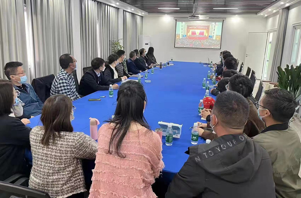 揚建集團各塊組織黨員集中收看二十大開幕會