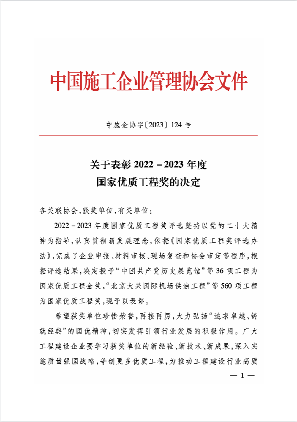 揚建網訊 12月9日,中國施工企業管理協會發布《關于表彰2022-2023年度國家優質工程獎的決定》,由集團公司承建,集團樁基、華發、環保公司等參建的揚州市湯汪污水處理廠三期工程榜上有名。至此,揚建集團共攬獲國家優質工程獎14項。