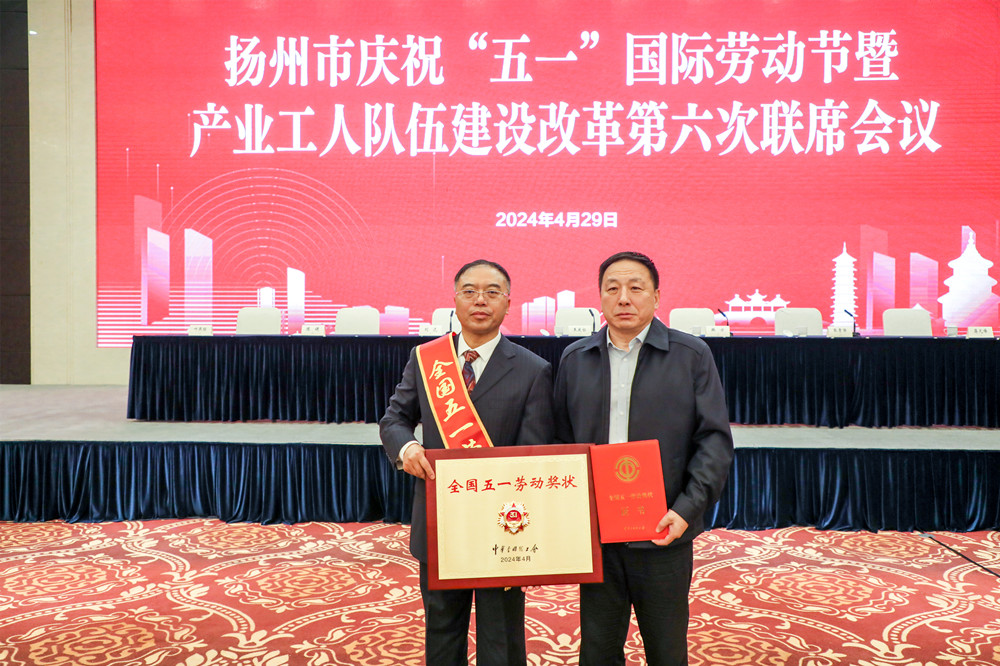4月29日,揚州市召開慶?!拔逡弧眹H勞動節暨產業工人隊伍建設改革第六次聯席會議,表彰揚州市獲得全國、省、市五一勞動獎和工人先鋒號的單位及代表。集團公司總經理鄒厚存作為全市唯一獲得全國五一勞動獎狀的單位代表,在會上作了題為《根植主業建精品,守正創新謀發展》的宣講,集團公司副總經理、工會主席劉海斌參加會議。