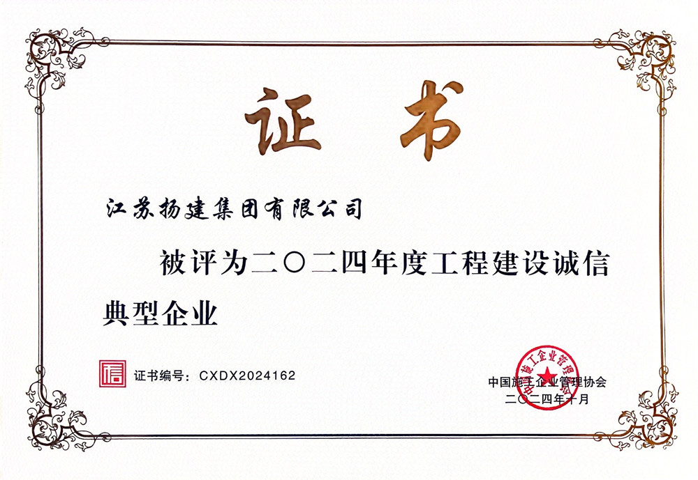 揚建集團獲評全國工程建設(shè)誠信典型企業(yè)