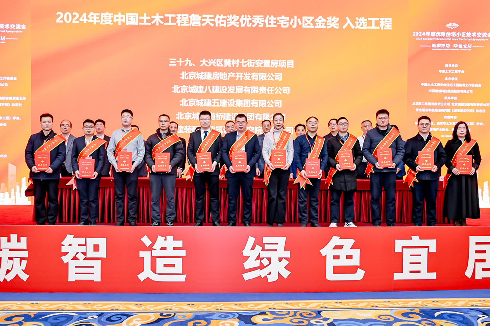 揚(yáng)建網(wǎng)訊 2025年2月24日上午,中國(guó)土木工程學(xué)會(huì)住宅工作指導(dǎo)委員會(huì)在北京召開(kāi)了2024年度中國(guó)土木工程學(xué)會(huì)優(yōu)秀住宅小區(qū)技術(shù)交流會(huì),會(huì)上舉行了2024年度中國(guó)土木工程學(xué)會(huì)詹天佑優(yōu)秀住宅小區(qū)金獎(jiǎng)?lì)C獎(jiǎng)儀式。由揚(yáng)建集團(tuán)承建的天月府項(xiàng)目榮獲該獎(jiǎng)項(xiàng),集團(tuán)公司總經(jīng)理鄒厚存、項(xiàng)目管理二公司總工楊忠偉登臺(tái)領(lǐng)獎(jiǎng)。