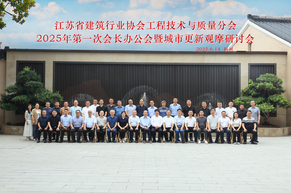 揚建網訊 6月14日,江蘇省建筑行業協會工程技術與質量分會2025年第一次會長辦公會暨城市更新觀摩研討會在揚州召開。會議由江蘇省建筑行業協會工程技術與質量分會會長、揚建集團總經理鄒厚存主持,江蘇省建筑行業協會會長耿裕華、副會長兼秘書長孫忠建,江蘇省建筑行業協會副會長、揚州建工控股集團黨委書記、董事長王宏,江蘇省建筑行業協會副秘書長殷會玲、徐金保,以及分會副會長單位代表、專業委員會委員等參加。
