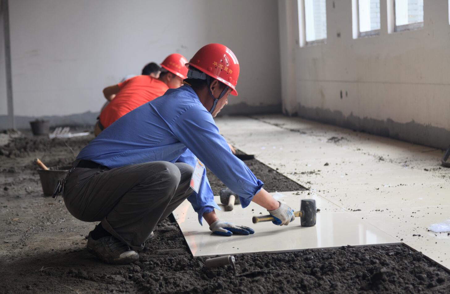 受現場工作面影響,本次競賽活動共有華發、市政及機電環保公司3個專業公司派出競賽小組參加了比拼。其中,華發裝飾派出4個競賽小組在電商物流學院教學樓比拼地磚鑲貼,市政公司派出3個競賽組進行人行道陶土磚鋪設比拼,機電環保公司派出4個競賽小組在學生宿舍樓開展電纜管道穿線競賽。