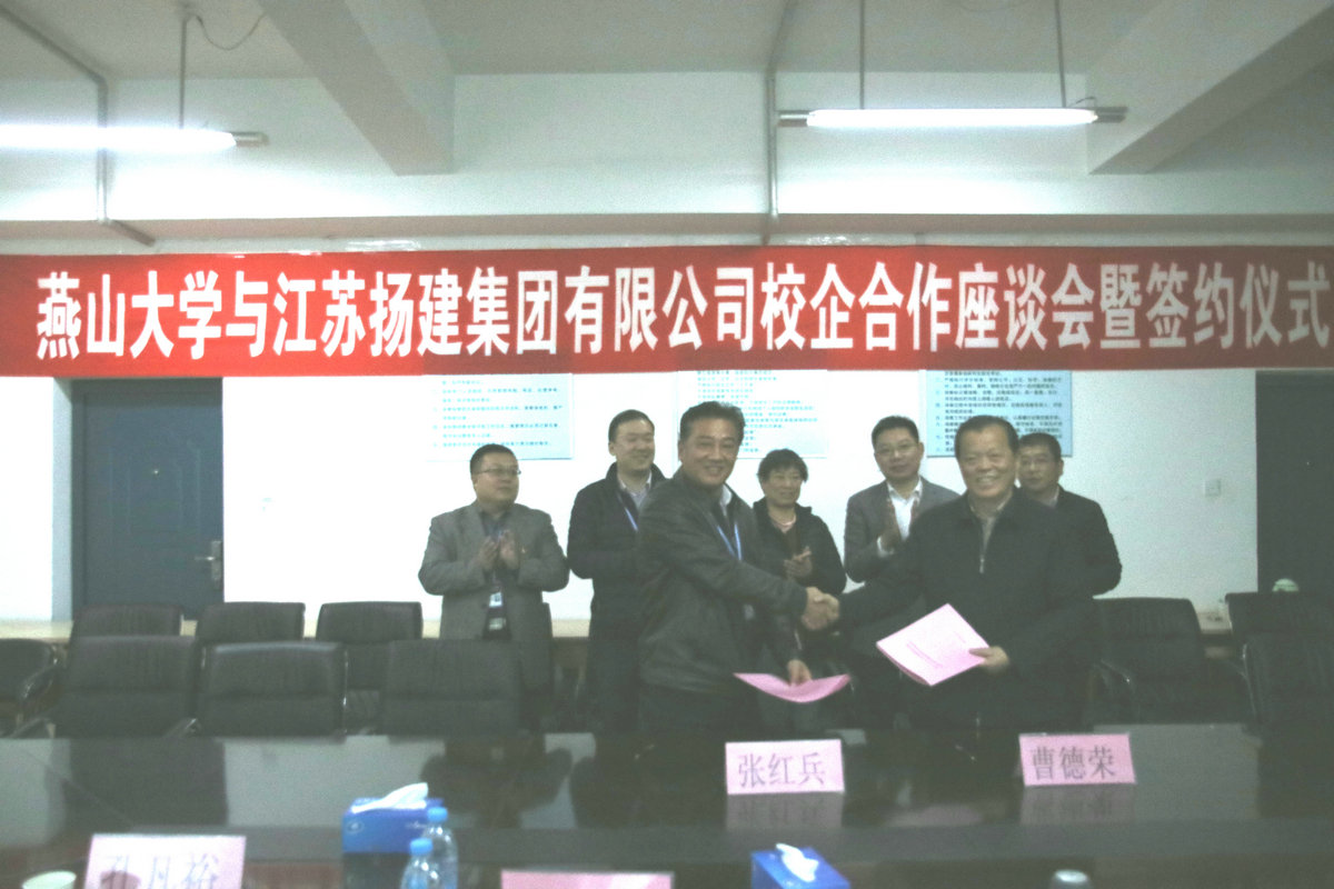座談過程中,雙方首先觀看了各自的宣傳片,增進了相互了解。隨后,燕大張?zhí)庨L介紹該校簡要校史、發(fā)展概況和畢業(yè)生就業(yè)情況;我集團曹董事長介紹了揚建的發(fā)展概況和人才需求情況;許世明董事就近年來揚建集團引進、培養(yǎng)和使用的燕山大學優(yōu)秀畢業(yè)生情況作了介紹。最后,他們代表校企雙方正式簽署了《燕山大學-江蘇揚建集團有限公司校企合作協(xié)議》。根據(jù)該協(xié)議,我集團將在燕大設立優(yōu)秀生源基地,燕大將在我集團設立畢業(yè)生就業(yè)基地;雙方定期聯(lián)系,建立人才供需信息互動機制;不定期互訪,雙方在人才培養(yǎng)與就業(yè)、在職骨干深造、教學改革、專業(yè)設置、產(chǎn)學研合作、互派導師或顧問等方面更好互動、深入合作。
