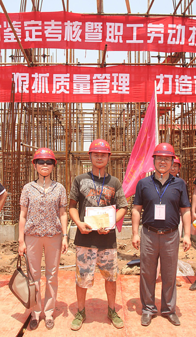 2009年6月22日至23日,集團在揚州市體育運動學校遷建工程施工現場舉辦了“企業高技能人才鑒定考核暨職工勞動技能競賽”,揚州市勞動和社會保障局顏軍副局長等領導和曹德榮、楊志娟、鄒厚存、張振新等集團領導蒞臨現場指導。經過40名選手的精心準備和認真努力,整個鑒定考核工作取得了圓滿成功。
