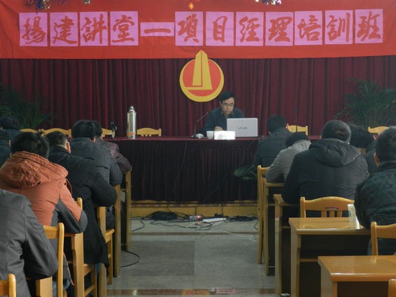 2013年2月23日至24日上午,集團在總部七樓會議室舉辦《揚建講堂》一期四次項目經理培訓班,邀請了集團副總裁于金濤、總經理助理沙家馭進行授課,來自集團總部、各分公司、子公司的一百余名項目經理參加了本次培訓。