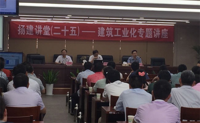 2016年6月18日上午,集團舉辦第25期揚建講堂——建筑工業化專題講座。本次講座特邀東南大學土木工程學院建筑工程系教授、博士生導師郭正興教授主講。市建設局、集團相關領導及部分項目管理公司骨干參加了學習。