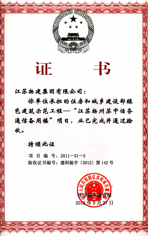 住房和城鄉建設部綠色建筑科技示范工程1項